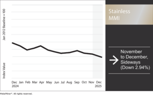 The Stainless Monthly Metals Index (MMI) appeared increasingly weak, sliding by 2.94% from November to December.