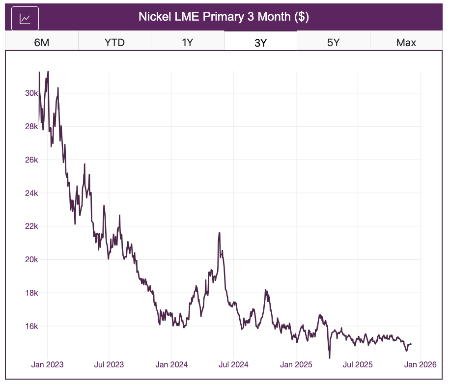 Nickel Prices Set to Close 2025 as Worst-Performer
